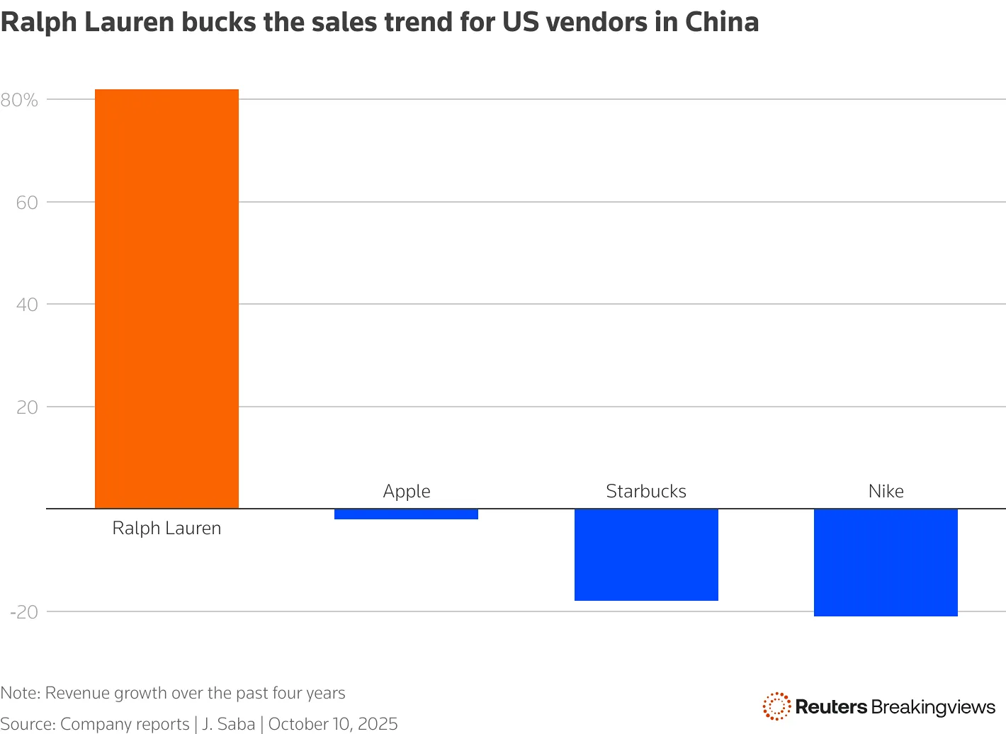 Ralph Lauren cuối cùng sẽ phải đối mặt với những vấn đề tương tự mà các công ty phương Tây khác thường gặp phải. Chi tiêu của người tiêu dùng Trung Quốc đang chậm lại. Cũng dễ mất lợi thế: doanh số của Anheuser-Busch InBev đã giảm bất chấp hình ảnh sang trọng hơn của Budweiser tại quốc gia này. Thuế nhập khẩu và xuất khẩu trả đũa có thể ăn mòn lợi nhuận. Sai lầm văn hóa tiếp theo chỉ cách một bài đăng trên mạng xã hội.
