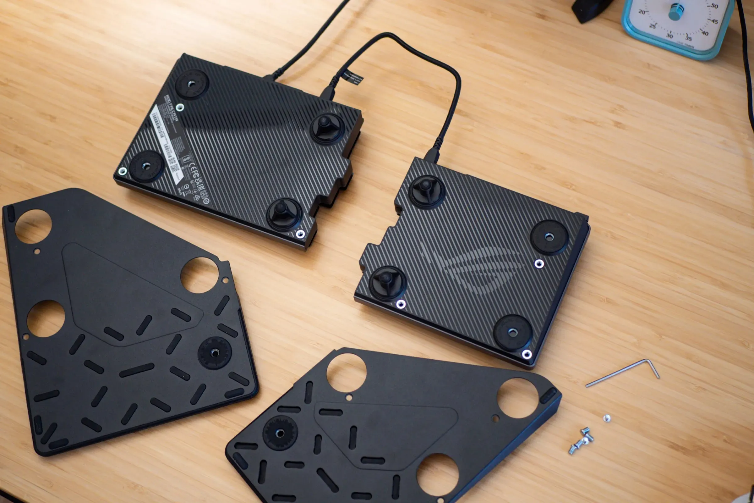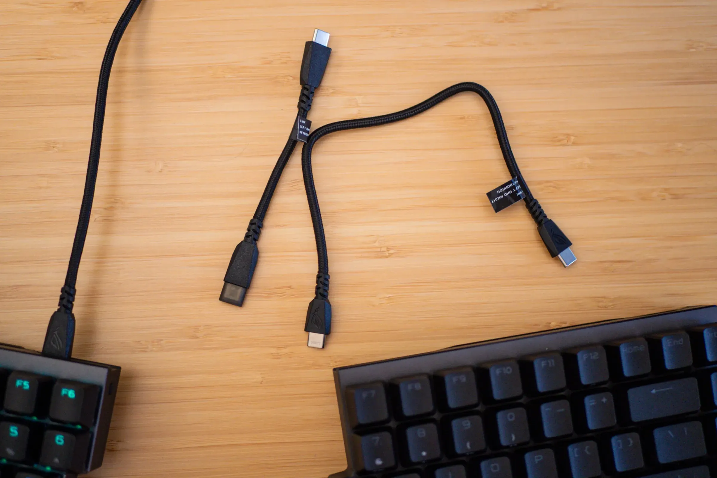 Bạn có thể không biết điều gì cảm thấy đúng cho đến khi sử dụng bàn phím tented, nhưng ở mức giá này, Asus nên bao gồm nhiều tùy chọn tenting hơn — và cáp nối USB-C dài hơn nữa. Hai nửa chỉ có thể tách ra tối đa 25,4 cm, điều này không cho phép tôi dang rộng cánh tay nhiều như tôi cần để cảm thấy thoải mái (cáp không tháo rời của Freestyle có thể lên đến 35,6 cm). Chắc chắn, tôi có thể sử dụng cáp dài hơn của riêng mình với Falcata, nhưng ở mức 420 đô la, đây là một sự thiếu sót.
