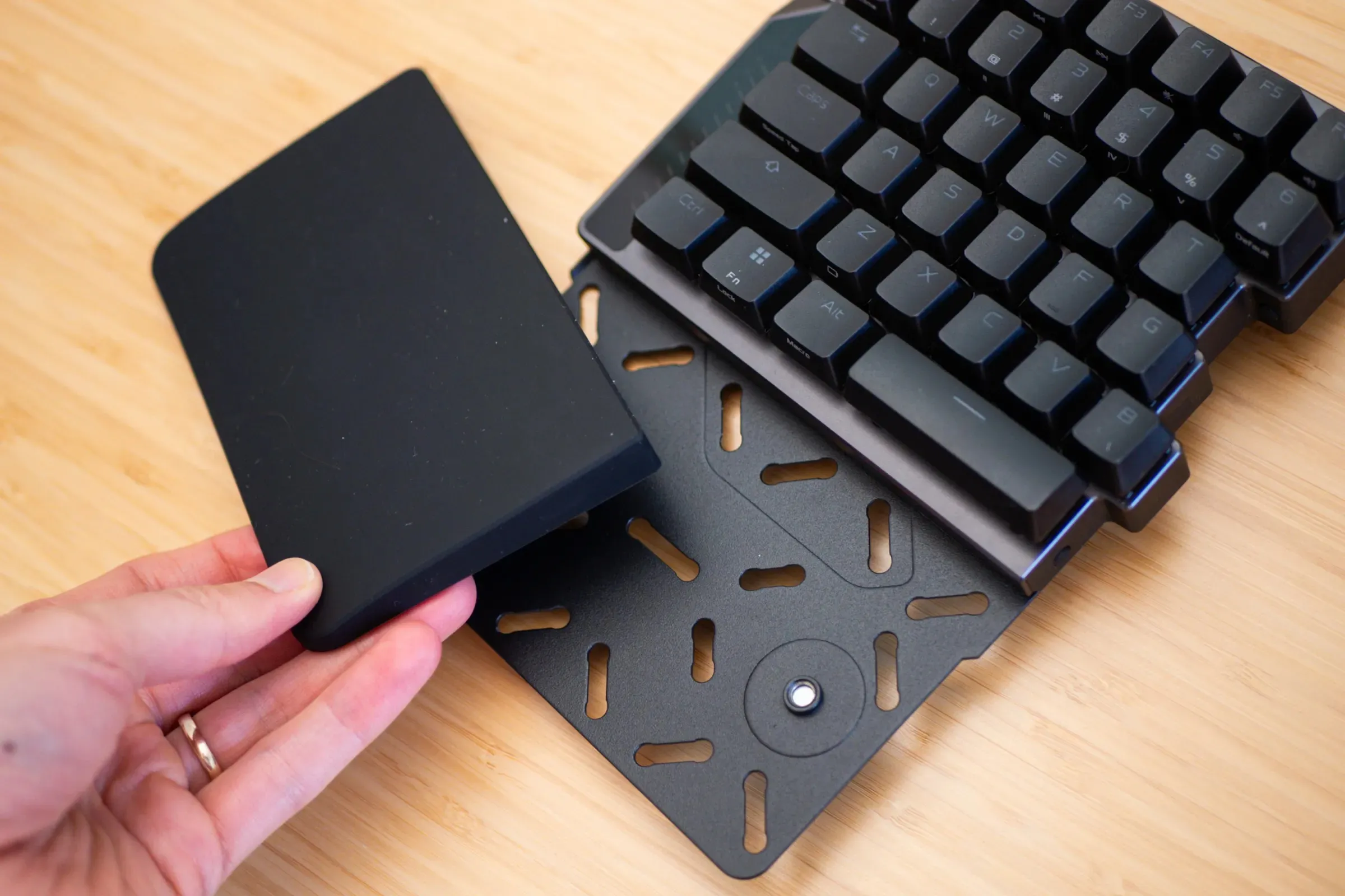 Tenting là tính năng không thể thiếu của bàn phím split công thái học. Khả năng nâng các cạnh bên trong của mỗi phần trong hai phần theo ý thích cho phép cánh tay và cổ tay của bạn nghỉ ngơi ở vị trí trung tính hơn so với bàn phím thông thường. Falcata chỉ có thể tenting lên đến bảy độ (hoặc sáu độ khi lắp đệm cổ tay). Một số người có thể chỉ cần tenting nhẹ mà Falcata cung cấp; tôi đã quen với tenting 15 độ trên Kinesis Freestyle Edge RGB của mình, trong khi một số người thích thậm chí cao hơn.