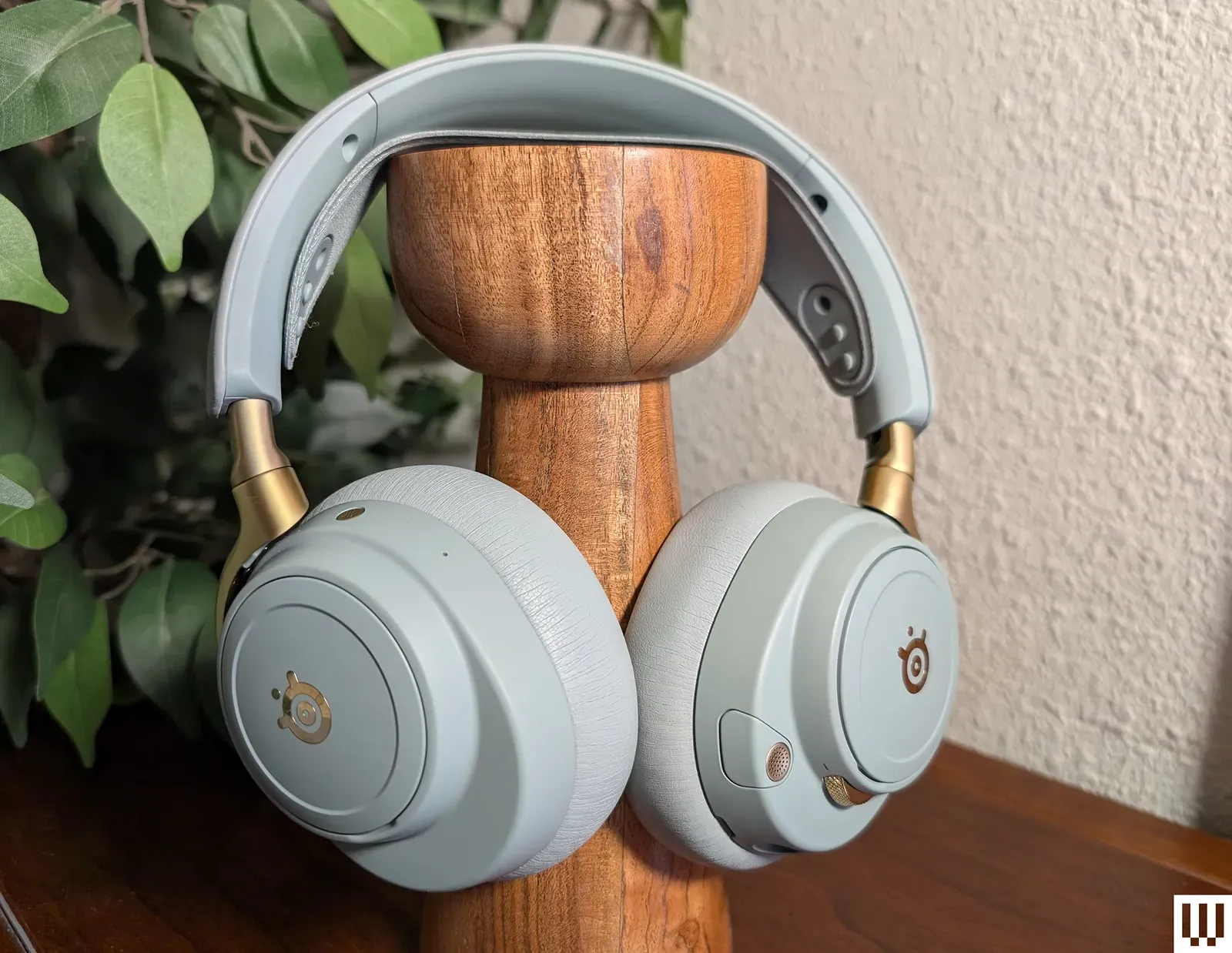 Độ vừa vặn và hoàn thiện sẽ là lý do lớn khác của tôi để chọn chúng thay vì Arctis Pro hoặc BlackShark V3 Pro. Arctis Elite cực kỳ chắc chắn, với băng đầu kim loại nâng cấp cảm thấy thực sự nghiêm túc. Trong khi bạn có thể có chúng màu đen, thay vào đó bạn nên chọn màu xanh sage và vàng. Nó ngay lập tức bắt mắt và thanh lịch, đặc biệt trong số các tai nghe gaming, có xu hướng tối tăm và buồn tẻ hoặc quá mức gamer-coded. Thật không may, chiếc tai nghe đầy tính năng này cũng là nặng nhất tôi đã thử nghiệm với 380 gram, chỉ nặng hơn khoảng 10 gram so với Razer. Băng đầu SteelSeries thoải mái nhất xung quanh, nhờ dây đeo treo "goggle band" giúp phân tán trọng lượng trên đỉnh đầu, nhưng nó chỉ có thể làm được nhiều như vậy.