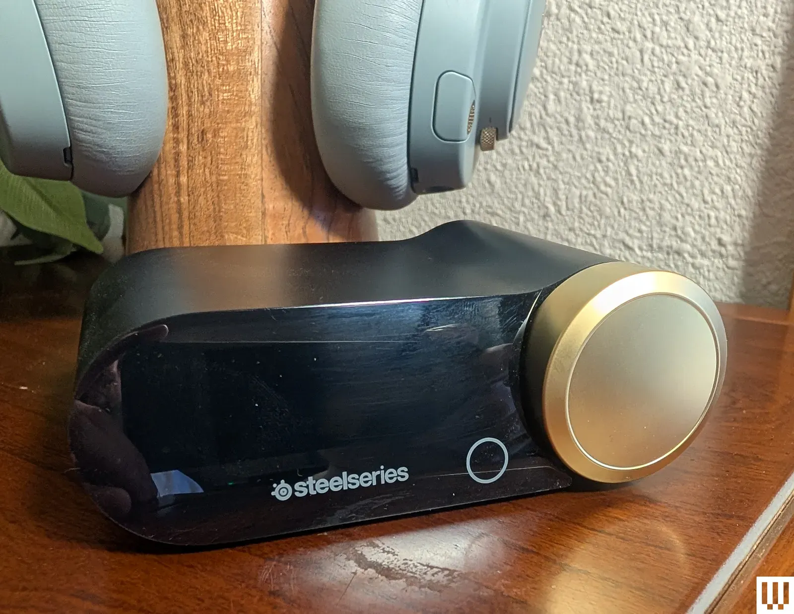 Cũng được bao gồm với Arctis Nova Pro, SteelSeries GameHub hoạt động như cả USB DAC và kết nối 2,4 GHz cho tai nghe. Ngoài núm lớn để điều khiển âm lượng và màn hình để kiểm tra cài đặt, có ba cổng USB-C ở phía sau, cộng với đầu vào và đầu ra 3,5 mm, vì vậy bạn có thể kết nối tối đa bốn thiết bị cùng lúc, bao gồm Bluetooth. Tôi tưởng tượng hầu hết những người đang xem xét tai nghe gaming 600 đô la đã có nhiều console, vì vậy bạn có thể sử dụng những chiếc tai nghe này cho tất cả mà không cần đổi dây cáp. Điều này cũng có nghĩa là chúng có tầm xa xuất sắc, và mặc dù văn phòng của tôi ở một góc nhà, tôi có thể duy trì kết nối suốt qua nhà và ra sân sau, với các tai nghe khác ngắt kết nối gần hơn nhiều.