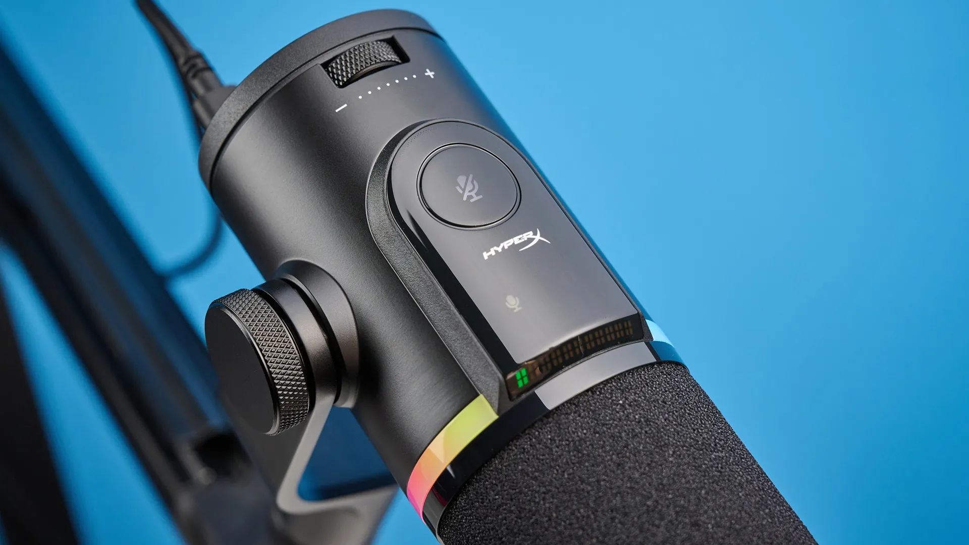 Trên đỉnh micro có một touchpad để tắt/bật tiếng ngay lập tức, đây cũng là tính năng bạn sẽ thấy trên Shure MV7+. Tôi yêu tính năng này — rất tuyệt vời cho những lúc tạm dừng trên stream hoặc khi người khác đang nói và bạn không muốn thu âm nền. Còn có núm xoay âm lượng để điều chỉnh gain, rất hữu ích.