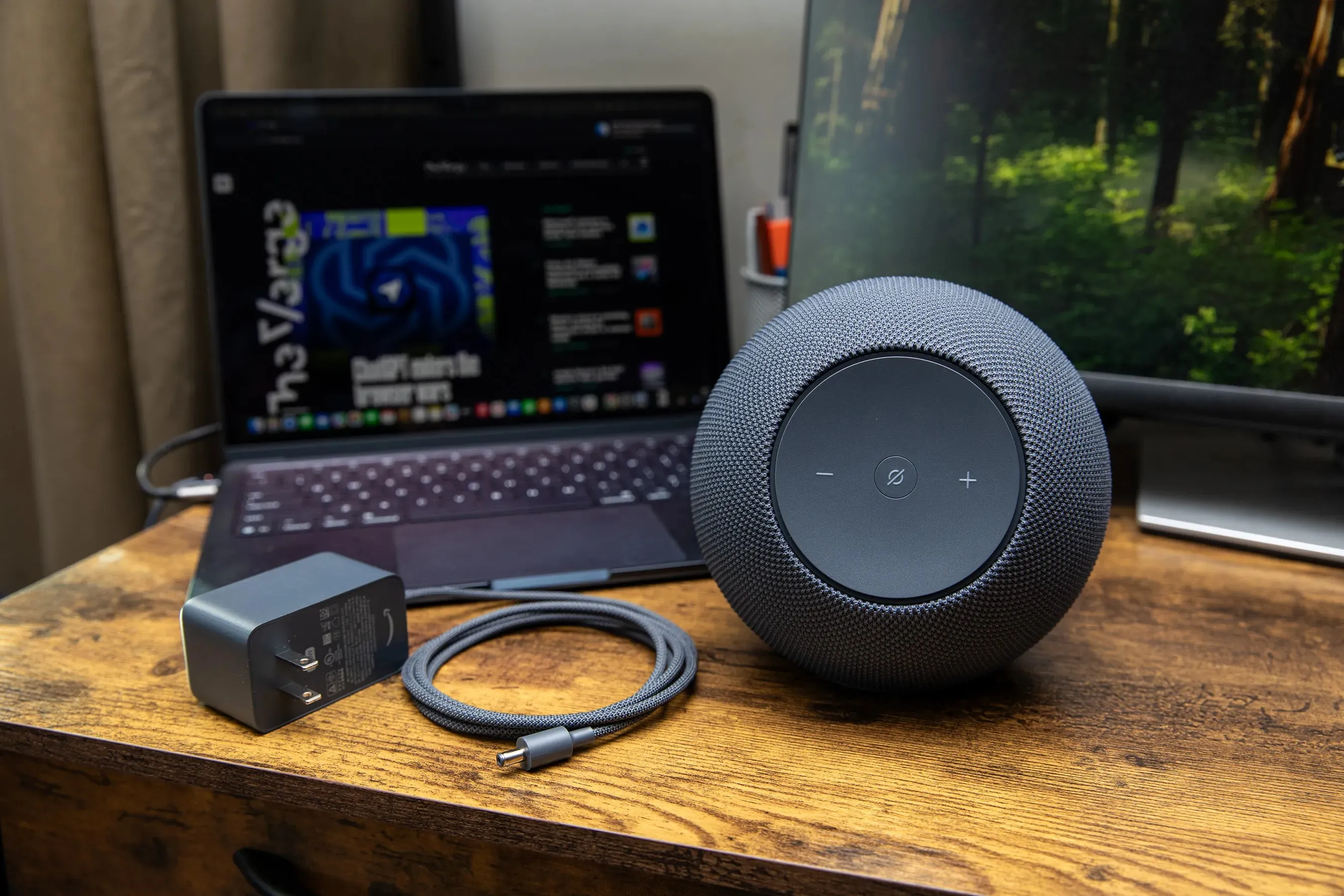 Trong khi Studio là phiên bản lớn hơn của Dot Max, nó vẫn nhỏ hơn 40% so với Studio gốc, đây là một thay đổi đáng hoan nghênh. Nó chỉ rộng 15,24 cm, giúp dễ dàng đặt trên kệ, tủ phòng ngủ, hoặc bàn bếp mà không trông và cảm thấy áp đảo. Nhưng kích thước giảm cũng có nghĩa là ít loa và loa nhỏ hơn. Studio gốc có năm driver: một woofer hướng xuống có cổng 13,34 cm, ba driver tầm trung 5,08 cm, và một tweeter 2,54 cm. Phiên bản 2025 sử dụng một woofer cao cấp 9,53 cm (cao cấp có nghĩa là driver có thể di chuyển khoảng cách lớn hơn để có khả năng tạo bass nhiều hơn) và ba driver toàn dải 3,81 cm với tổng cộng bốn loa. Không chỉ Studio mới nhỏ hơn với ít loa hơn, nó còn có bộ khuếch đại 50 watt, giảm từ bộ khuếch đại khổng lồ 330 watt trong phiên bản đầu tiên.