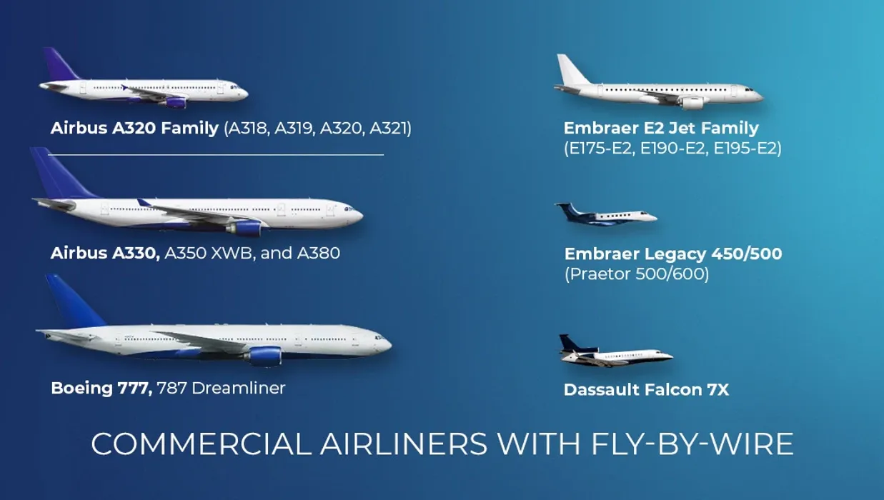 - Airbus A330, A350 XWB, A380: hệ thống FBW tiên tiến.