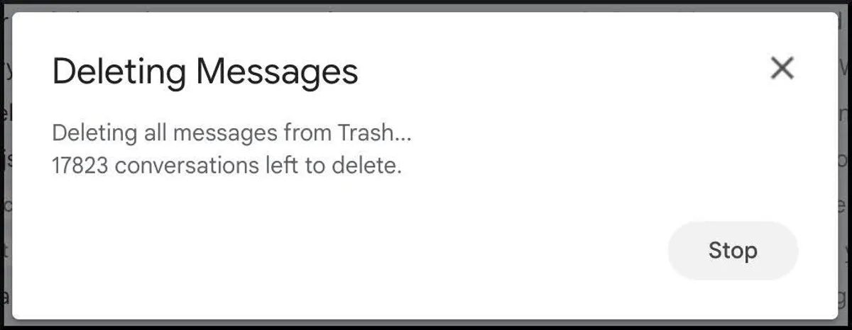 Quan trọng: Sau khi chuyển tin nhắn Gmail của bạn sang tài khoản thư lưu trữ, tài khoản Gmail gốc của bạn sẽ đặt tất cả những tin nhắn đó vào thư mục Thùng rác, mà bạn sẽ cần làm trống thủ công. Việc xóa 75.000 tin nhắn đó khỏi Thùng rác mất khoảng một giờ.