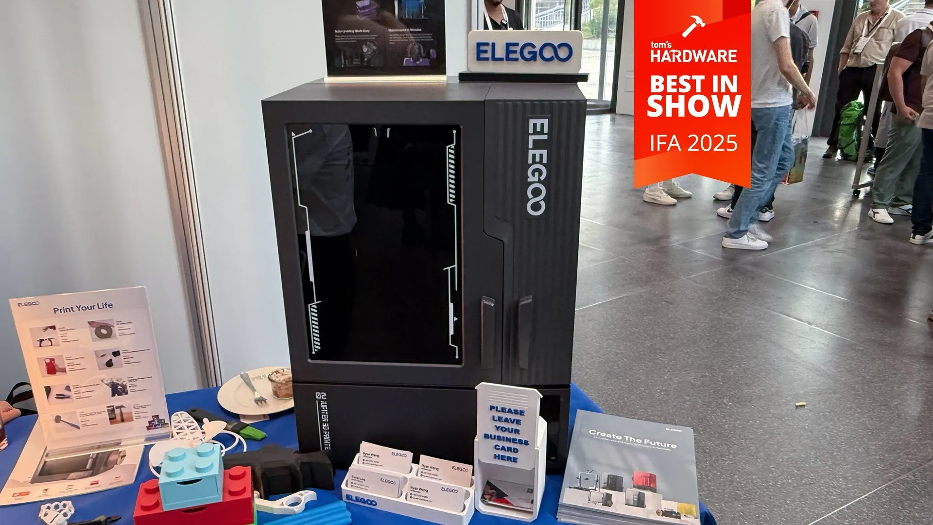 Elegoo Jupiter 2 được công bố đầu năm nay, và hãng mang máy in 3D resin này tới IFA vận hành trực tiếp. Chúng tôi rất “mê” máy in resin tại Tom's Hardware, và Jupiter 2 chắc chắn là cỗ máy khổ lớn đồ sộ. Đây là thành viên lớn nhất dòng Jupiter với thể tích tạo hình 302,40 x 161,98 x 300 mm.
