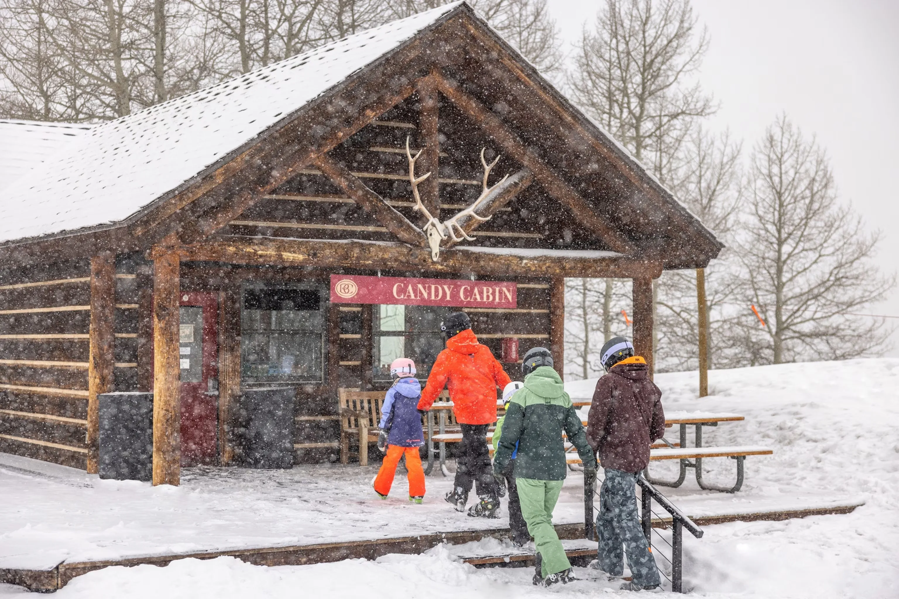 Khi trẻ em rèn luyện kỹ năng trên núi, có rất nhiều cơ hội để ghé thăm ba cửa hàng đồ ngọt trên núi. Candy Cabin cung cấp nhiều loại đồ ngọt, bao gồm M&M's, kẹo đậu và kẹo dẻo chua, tất cả đều có sẵn theo thùng. Ice Cream Parlour ở đỉnh Haymeadow Park rất tuyệt cho kem sundae hoặc bánh sandwich phô mai nướng khi trẻ em cần nghỉ ngơi. Và Cookie Cabin bán bánh quy chocolate chip ấm và ca cao nóng cả ngày, vì vậy trẻ em (và học sinh) không phải chờ Cookie Time được lên lịch thường xuyên lúc 3 giờ chiều để thỏa mãn.