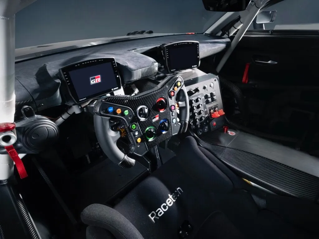 Chiếc có cánh gió sau khổng lồ là GR GT3, sẽ thay thế Lexus RC F GT3 đã “già” (ra mắt đua từ 2017). Khác với các nguyên mẫu đua ở IMSA GTP và WEC hạng Hypercar — như GR010 Hybrid của Toyota — xe GT3 dựa trên coupe thương mại và phải phù hợp cả tay lái nghiệp dư lẫn đội đua nhà máy. GR GT3 không có hệ hybrid của xe đường phố vì luật GT3 không cho phép. Nhưng đừng kỳ vọng thấy xe trước mùa giải 2027.