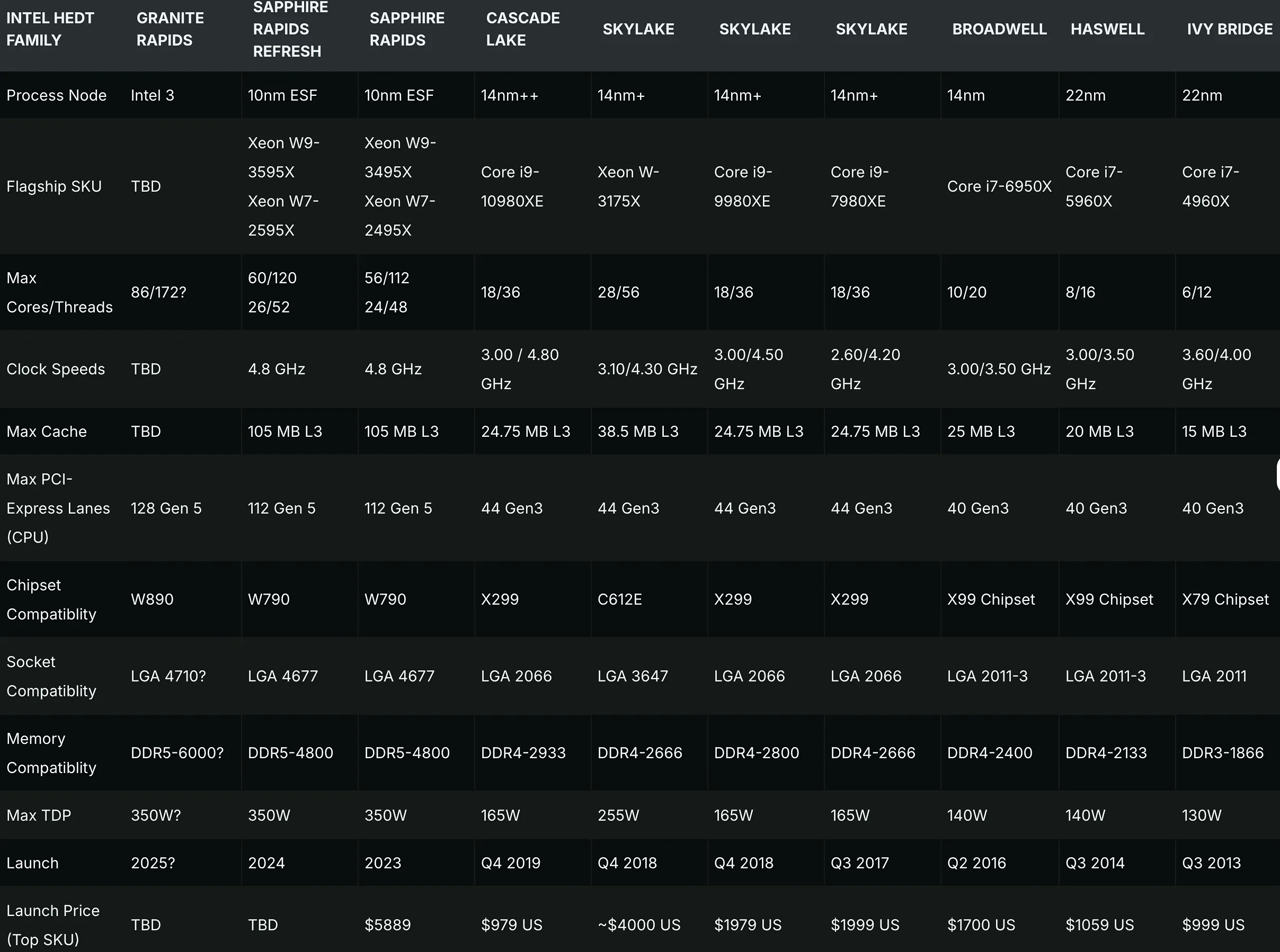 Thật thú vị khi thấy có nhiều biến thể "X" trong dòng sản phẩm, điều này sẽ cho phép hỗ trợ ép xung. Về mặt giá cả, chúng tôi mong muốn chúng cạnh tranh tốt nhất có thể với dòng Threadripper 9000, nhưng giá cuối cùng là điều mà chính Intel sẽ phải quyết định. Chúng tôi dự đoán việc ra mắt vào cuối Q4 hoặc CES 2026 cho dòng workstation Granite Rapids.