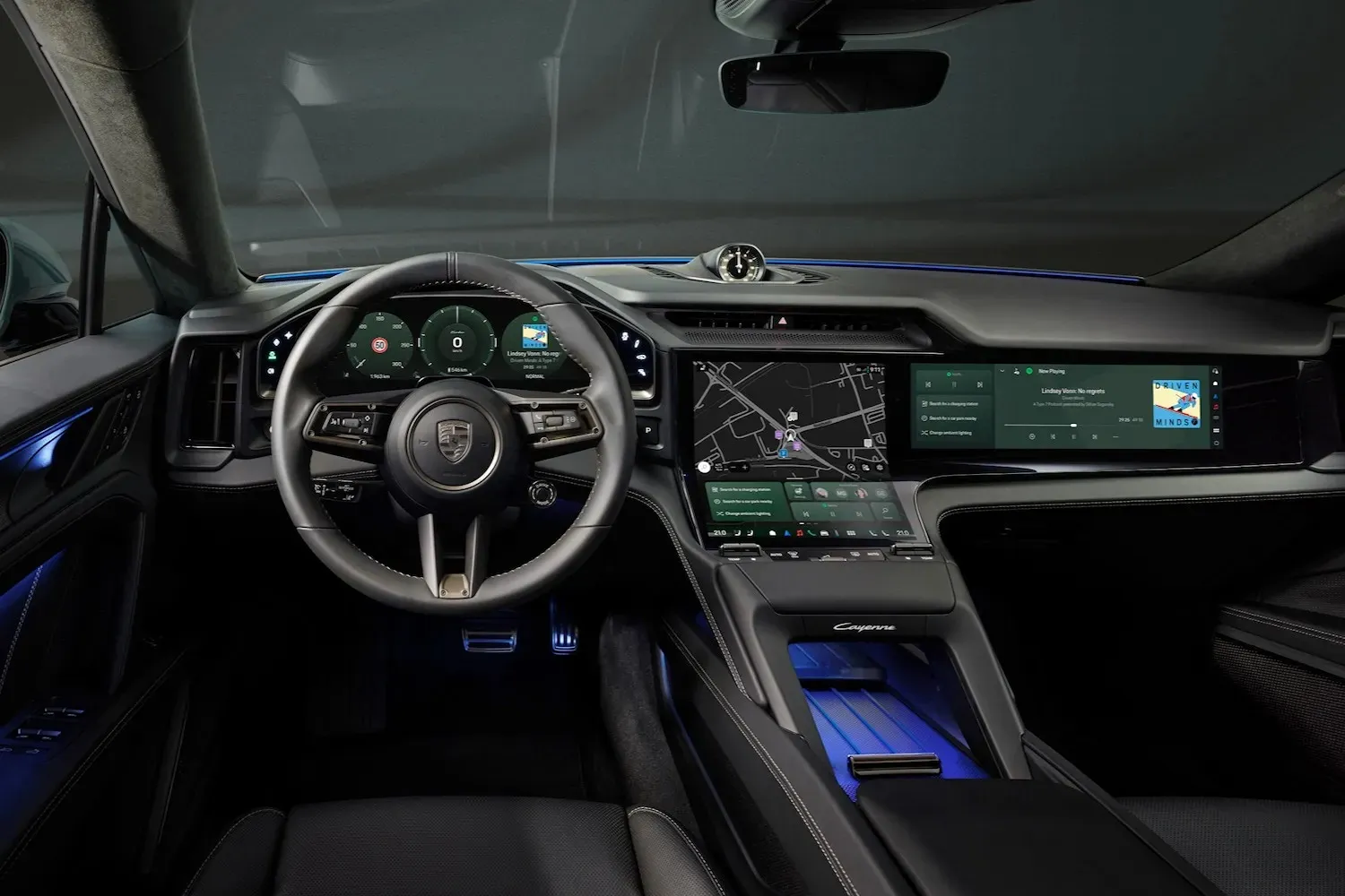 Taycan và Macan Electric tuân thủ triết lý Porsche với nội thất giảm thiểu màn hình và do đó giảm thiểu các yếu tố gây mất tập trung tiềm ẩn. Điều đó kết thúc với Cayenne Electric, nhưng Porsche vẫn quản lý để đặt dấu ấn riêng của mình vào khái niệm màn hình từ cửa này đến cửa kia.