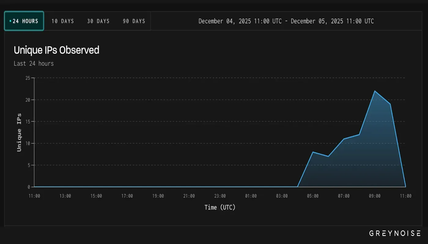 Các pattern này phù hợp với bộ kit khai thác phổ biến. GreyNoise cũng quan sát thấy dấu hiệu ban đầu lỗ hổng này đang được tích hợp vào Mirai và các module khai thác botnet khác, cho thấy chiến dịch cơ hội (opportunistic campaign) đã bắt đầu mở rộng quy mô.