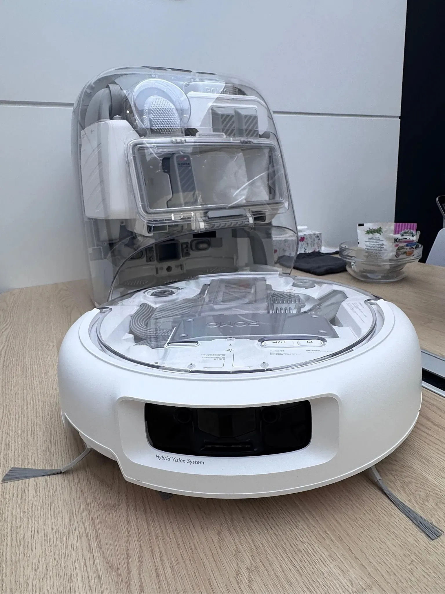 Mặc dù tôi yêu thích một thiết bị công nghệ trong suốt tốt không kém bất kỳ người đam mê gadget nào khác, tôi hoài nghi về việc nó sẽ trông như thế nào trong phòng khách của bạn sau sáu tháng làm việc chăm chỉ để làm sạch sàn nhà. Tuy nhiên, với tư cách là người đánh giá robot hút bụi, thật thú vị khi có thể nhìn thấy bên trong máy hút bụi và đế sạc.