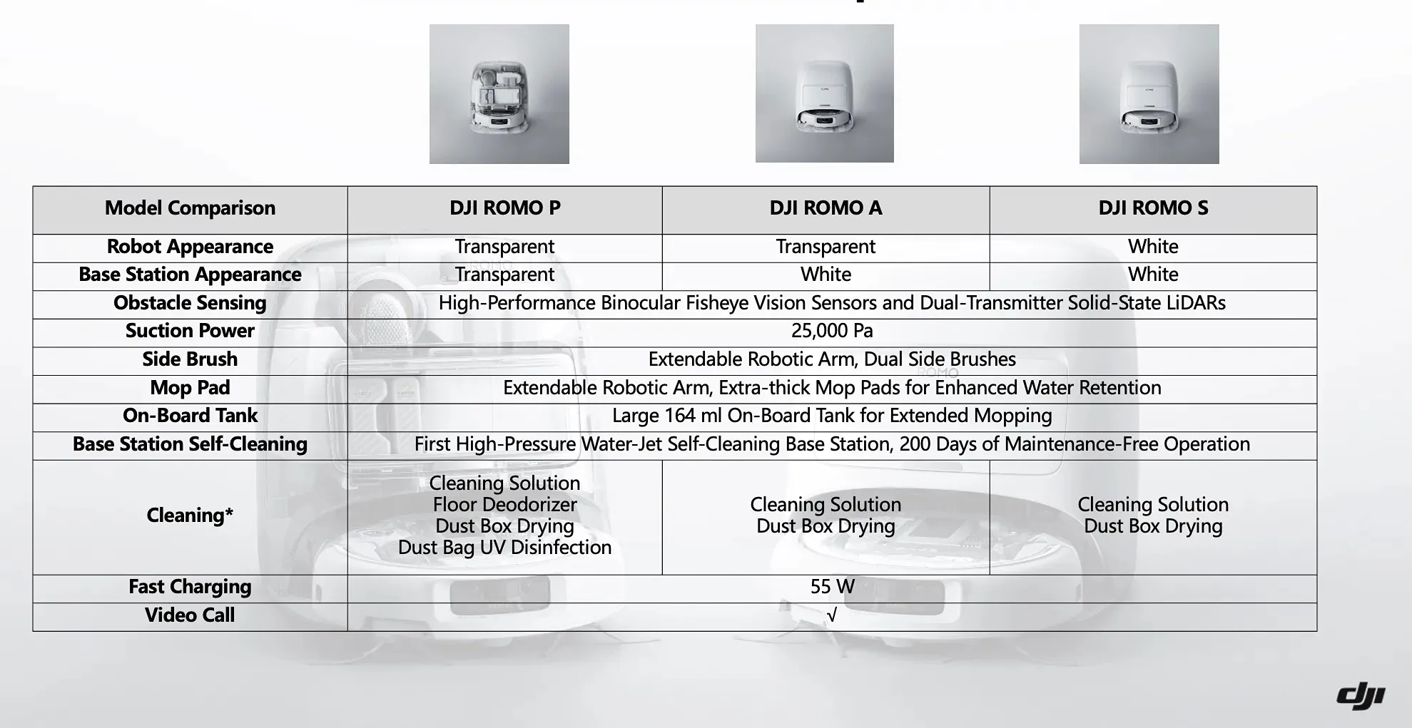 Romo có ba mẫu: flagship hoàn toàn trong suốt Romo P, bắt đầu từ 1.899 euro (khoảng 2.200 đô la); Romo A, kết hợp robot trong suốt với đế màu trắng mờ, giá 1.599 euro (khoảng 1.700 đô la), và Romo S toàn màu trắng, giá 1.299 euro (khoảng 1.500 đô la). Cả ba hiện đã có sẵn tại châu Âu trên store.dji.com.