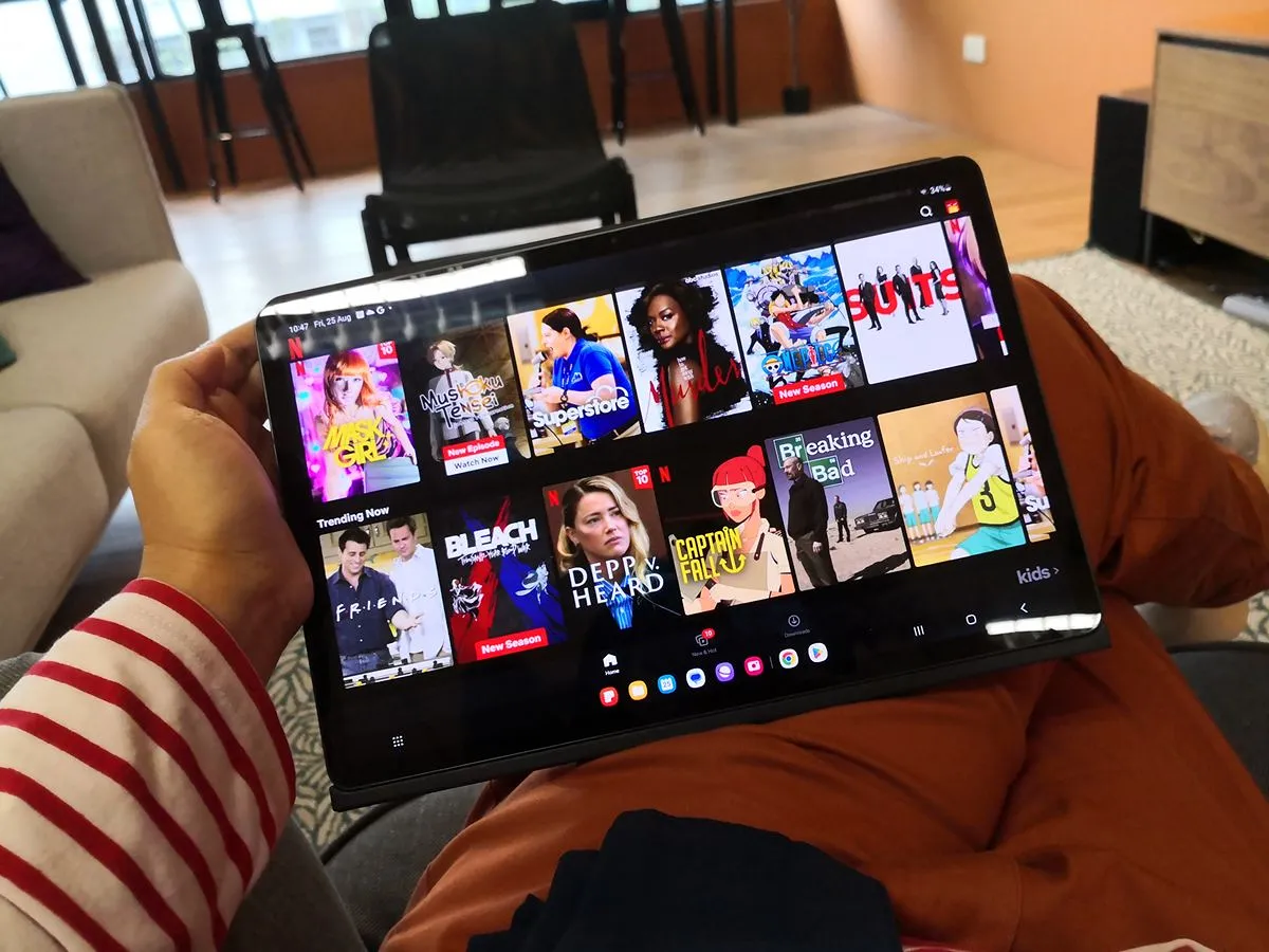 Màn hình đủ lớn để thưởng thức các series Netflix dài tập mà không mỏi mắt, đồng thời thiết kế mỏng nhẹ giúp bạn dễ dàng mang đi khắp nơi. Không còn cảnh phải nheo mắt nhìn màn hình điện thoại khi nằm trên giường xem phim yêu thích.