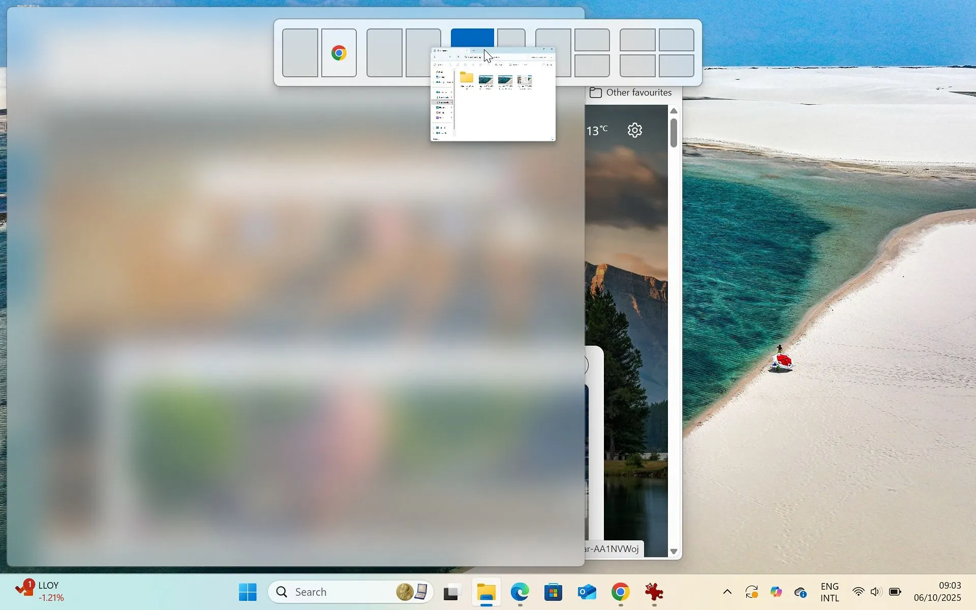 Kéo cửa sổ của bạn lên đầu màn hình và Snap Layouts sẽ cho phép bạn chọn từ các thiết lập được xác định, chẳng hạn như một pane lớn và hai pane nhỏ hơn xếp chồng, hoặc một triptych kiểu Hieronymus Bosch.