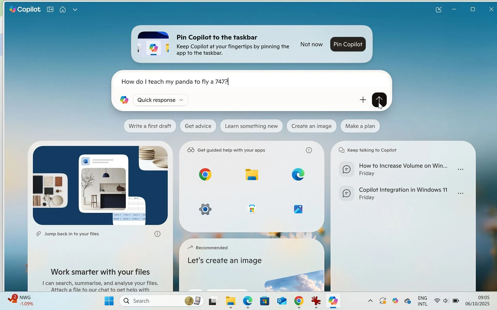 Trong Windows 11, Copilot có biểu tượng chuyên dụng riêng trên thanh tác vụ để khởi chạy nhanh, cộng với phím tắt (Windows Key + C), và khả năng hiểu những gì đang xảy ra trên màn hình của bạn và điều khiển một số yếu tố nhất định, như tắt Bluetooth hoặc điều chỉnh âm lượng.