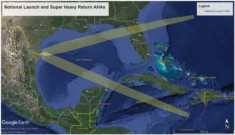 Cơ quan này đang xem xét các rủi ro an toàn của quỹ đạo phóng mới, cũng như việc phải đóng không phận trên một phần của Mexico, Cuba, Jamaica, Quần đảo Cayman và Mỹ.