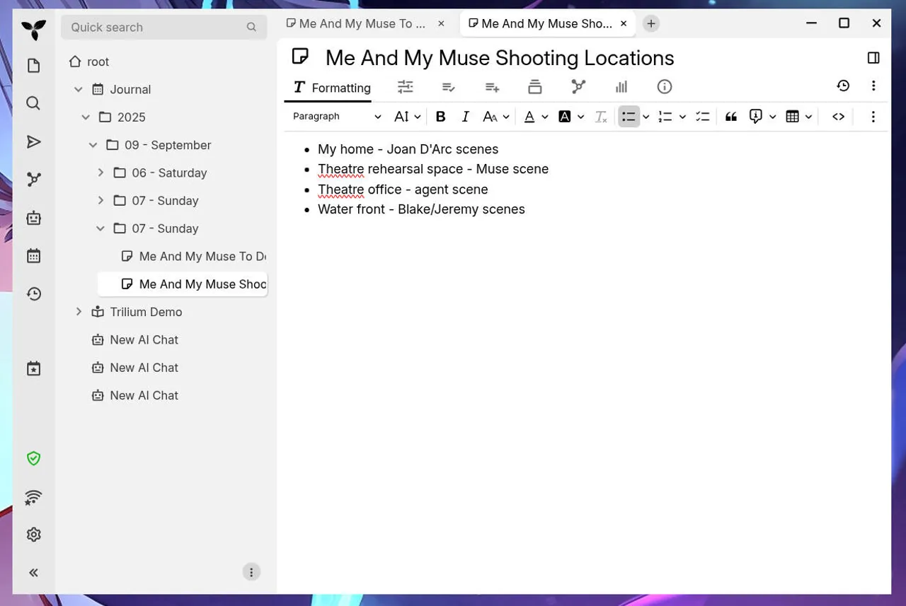Trilium Notes cũng cho phép bạn dễ dàng tạo ghi chú được bảo vệ bằng mật khẩu để tăng cường bảo mật. Khi bạn thêm hai tính năng đó, cùng với các tùy chọn tiêu chuẩn, Trilium Notes trở thành một công cụ rất mạnh mẽ để ghi chú. Hiện tại, chỉ có ứng dụng Trilium Notes cho Linux và MacOS, nhưng có một tùy chọn Windows đang được phát triển. Trilium cũng cung cấp tích hợp AI, nhưng tính năng này vẫn đang trong giai đoạn beta, và tôi chưa thể làm cho nó hoạt động.