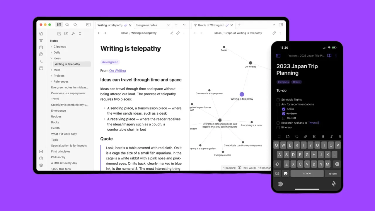 Một trong những lý do chính khiến Obsidian có mặt trong danh sách này là vì nó có rất nhiều tùy chọn, từ thư mục, liên kết ngược, canvas giống như sơ đồ tư duy, bảng lệnh, mẫu, ghi chú hàng ngày, chế độ xem đồ thị, khôi phục tệp, hàng nghìn plugin (cả chính thức và cộng đồng), chế độ xem đọc, ngăn, xuất sang PDF, và nhiều tính năng khác. Trên hết, Obsidian là đa nền tảng, vì vậy bạn sẽ tìm thấy phiên bản cho Linux, MacOS, Windows, Android và iOS.