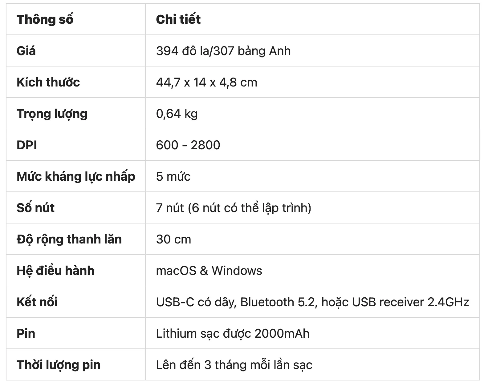 Thiết kế cao cấp và cài đặt DPI và độ nhạy tùy chỉnh khiến nó lý tưởng cho hầu hết những người cần ưu tiên năng suất. Hơn nữa, thời lượng pin khá tốt cũng cung cấp hàng tháng sử dụng mà không cần sạc.