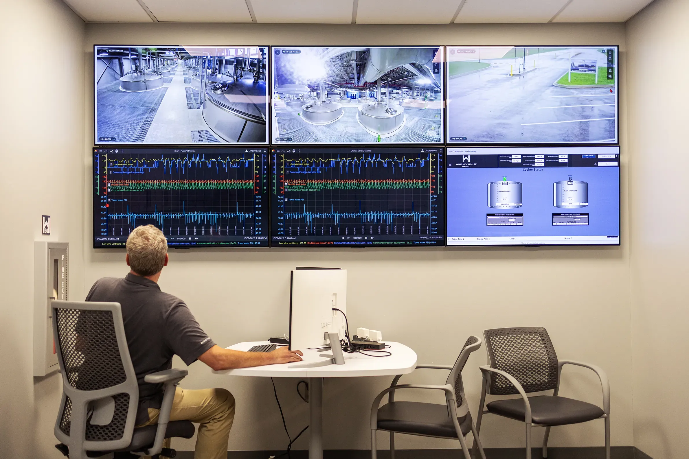 Vài nhân viên sản xuất tại chỗ dành phần lớn thời gian của họ đằng sau các màn hình rộng lớn trực quan hóa thông tin chi tiết từ hệ thống kiểm soát dự đoán mô hình của Whiskey House, chịu trách nhiệm giám sát mọi khía cạnh của hoạt động. Dữ liệu chảy vào từ hơn 1.500 cảm biến được lắp đặt trên mọi thiết bị trên sàn sản xuất. Gradient nhiệt độ trên các tấm trong cột chưng cất, động lực cân bằng hơi-lỏng, tỷ lệ hồi lưu, và nhiều hơn nữa đều được theo dõi và ghi lại theo thời gian thực. Các nhà điều hành sử dụng các cảm biến và phần mềm phân tích này để đưa ra quyết định thay vì dựa vào trực giác mà một nhà chưng cất bảo thủ có thể dựa vào. Một trao đổi dữ liệu tập trung cho phép bất kỳ hệ thống nào trong nhà máy giao tiếp với bất kỳ hệ thống nào khác, vì vậy nếu có gì đó sai, nó có thể được phát hiện ngay lập tức và từ bất cứ đâu.