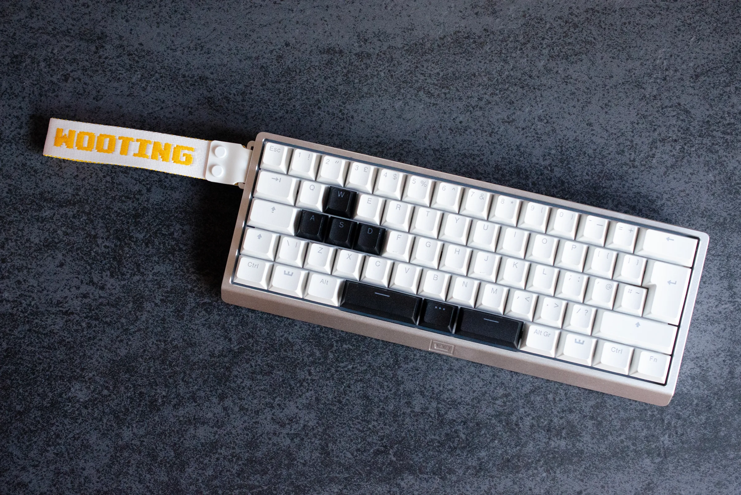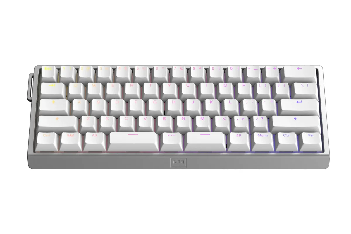Wooting 60HE v2 có cùng layout 60% như bản gốc, vì vậy không có phím chức năng riêng biệt hoặc hàng F. Cũng không có phím mũi tên, nhưng Wooting có hệ thống "mod tap" thông minh cho phép người dùng kích hoạt phím mũi tên trong phần shift bên phải của bàn phím.