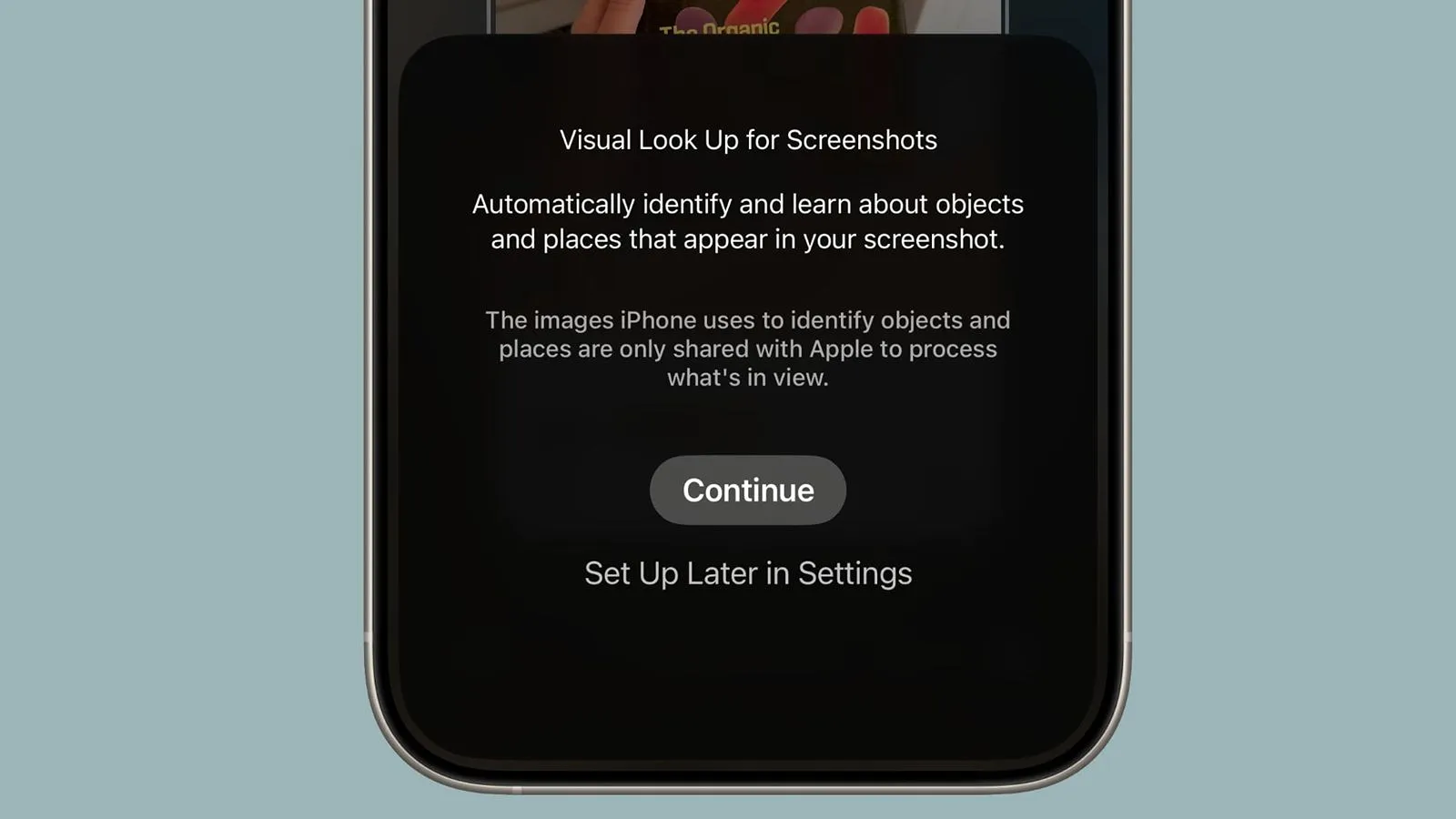 Bạn có thể dùng Visual Intelligence (Trí Tuệ Thị Giác) với nội dung đang hiển thị – tiện hơn so với kích hoạt qua Camera. Chỉ cần chụp ảnh màn hình rồi chạm vào để mở điều khiển xử lý trên thiết bị.