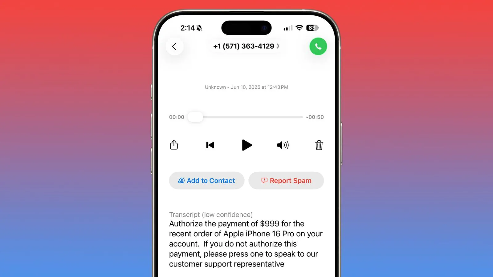 Apple Intelligence có thể tóm tắt và tạo bản chép (transcript) thư thoại để bạn xem nội dung nhanh mà không cần nghe toàn bộ.